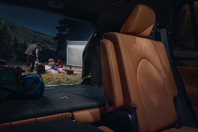 The hybrid versions benefit from a 2.5-litre 4-cylinder engine which, thanks to the work of two electric motors, offers an output of 243 horsepower and a torque of 263 lb-ft. With average fuel consumption of 6.6 litres per 100 kilometres in the city, 6.8 litres for highway driving, the Highlander Hybrid is the most economical three-row SUV you can buy.